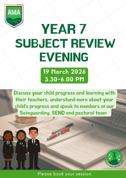 Discuss your child progress and learning with their teachers, understand more about your child progress and speak to members of our Safeguarding, SEND and pastoral team. Booking link will be shared with parents and carers via Arbor. We look forward to seeing you!