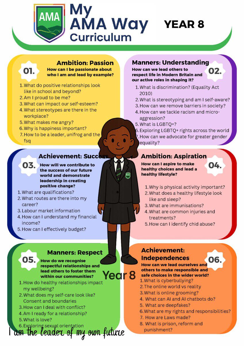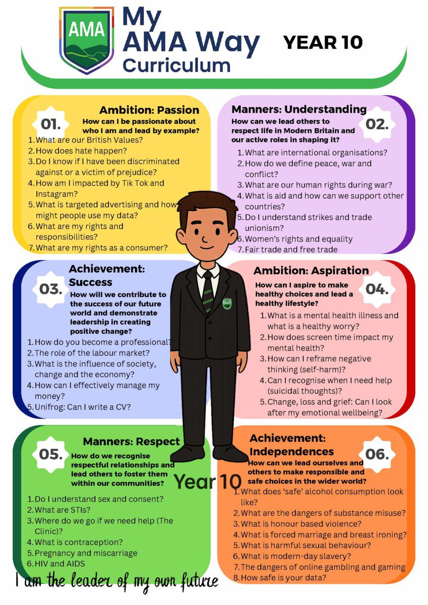 Our PSHE curriculum is built on the belief that every young person has the potential to “Be the leader of their future.” This guiding principle underpins every unit, encouraging students to recognise their own power to influence their lives, their communities, and the wider world around them.